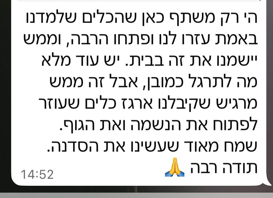 בהחלט ניקח איתנו לחיים חלקים ממה שלמדנו אצלך".